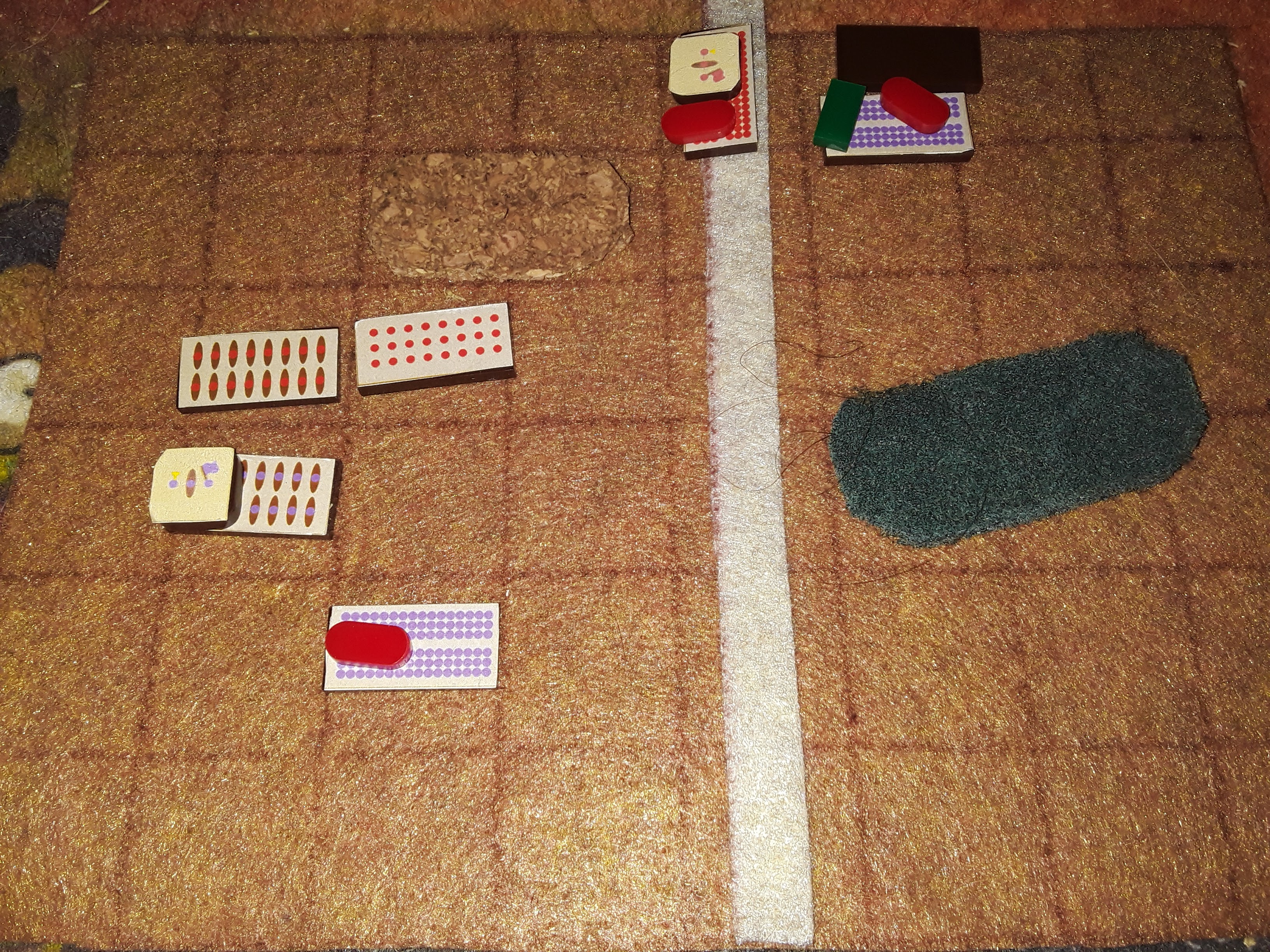 Game Note: I randomly rolled breakthrough as the objective. Pyrrhus needs to get 2 units off the Roman side of the battlefield.